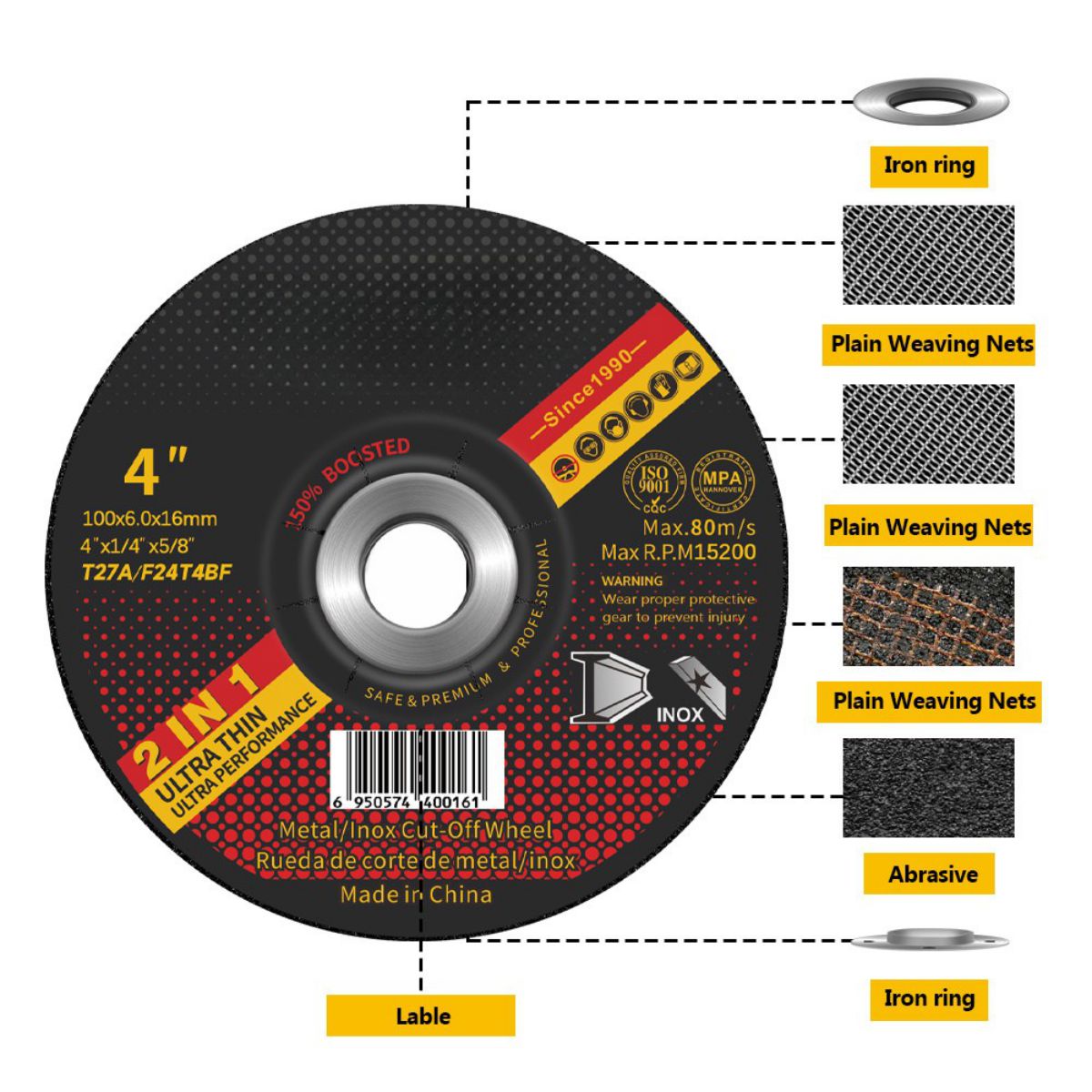 ใบเจียรขนาด 100×6.0x16 มม. ของ Qing Yang® ออกแบบมาสำหรับการแปรรูปโลหะและการบำรุงรักษาอาคาร เหมาะสำหรับ: