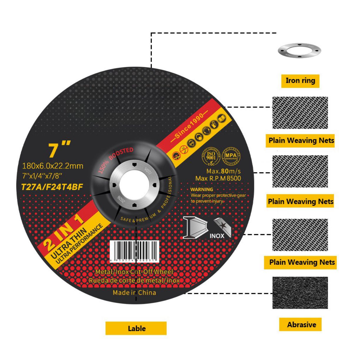 - โครงสร้างล้อเจียรเรซินพร้อมใบรับรองความปลอดภัย EN 12413
